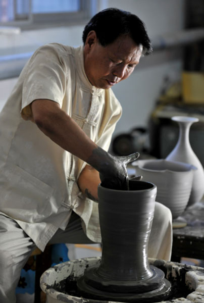 今年65歲的李廷懷大師已經(jīng)從事汝窯生產(chǎn)42余年,對于汝瓷文化的熱愛和堅(jiān)守,使他近乎將所有心血都投入在了汝窯事業(yè)當(dāng)中。李廷懷說:“有時微風(fēng)拂過,瓷片相互碰撞,發(fā)出一陣陣清脆的聲音,屏息凝神,聽,這是多么悅耳的聲音啊。我要把這種聲音延續(xù)下去,重塑汝瓷文化的輝煌,鑄就時代的最強(qiáng)音。”