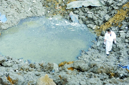 爆炸點形成直徑10余米的大坑
