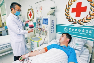 “上午8點(diǎn)半開(kāi)始采集,3個(gè)小時(shí)順利結(jié)束?!弊蛱焐衔纾瑏?lái)自焦作沁陽(yáng)的33歲退伍兵張國(guó)強(qiáng),在河南省腫瘤醫(yī)院造血干細(xì)胞采集室成功捐獻(xiàn)造血干細(xì)胞混懸液194毫升。
